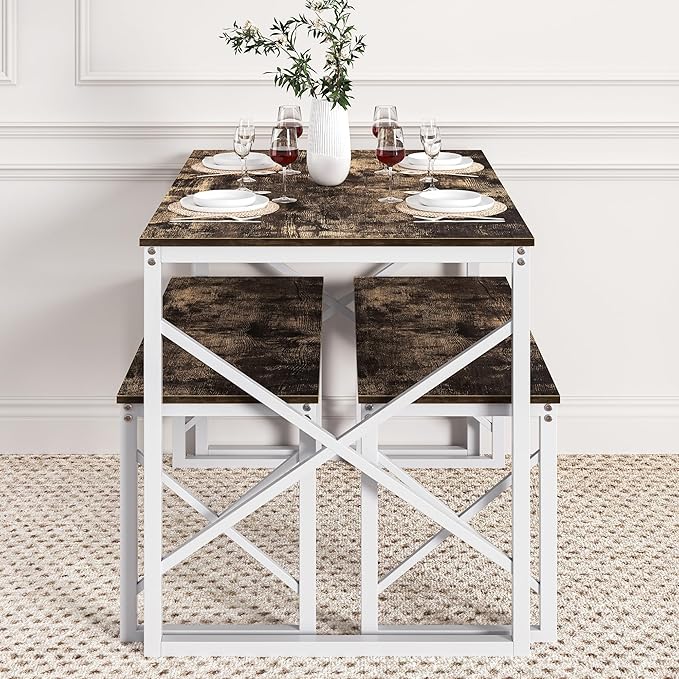 - Sturdy and Durable Design - Our kitchen table and bench are made of high-quality, thickened MDF board and steel tubes for a sturdy and durable design. The table top is waterproof and scratch-resistant, making it easy to clean and perfect for daily use. The white spray-painted frame is waterproof and anti-corrosion, ensuring long-lasting use of this table and bench set.