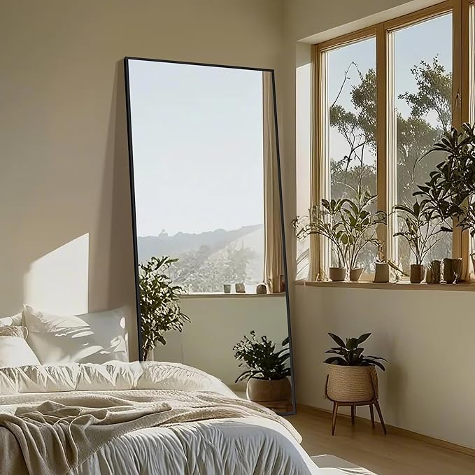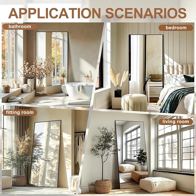 - HD REFLECTION & EXPLOSION PROOF: This wall mirror is made of HD float glass, better reflection, more durable. And floor mirror has an explosion proof design on the back to prevent splinters and make the mirror safer.