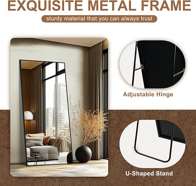 - RESISTANT & STURDY FRAMED: Full body mirror frame is made of Aluminium alloy, which is not easily discoloured, not easily deformed and has better performance than MDF and wooden ones,especially in humid environments.