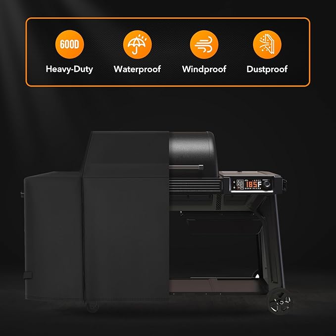 - Heavy Duty 600D Polyester Cover compatible with Traeger grills Woodridge Pro and Woodridge Elite