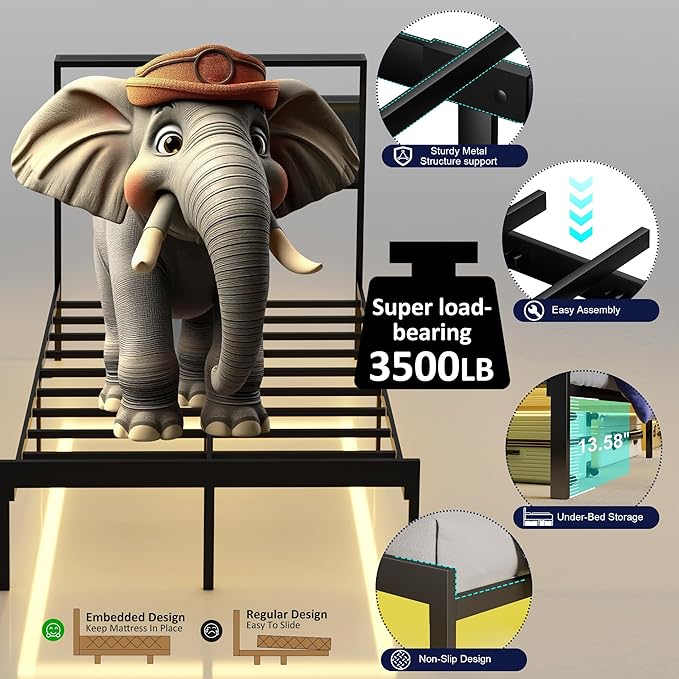 - COOL MULTI-FUNCTIONAL LED LIGHTS: This queen bed frame with LED lights is available in over 60,000 colors, and you can adjust the color, brightness, mode, and timer function according to your preference via mobile APP or remote control. The combination of cool lights and music can create a romantic or dynamic atmosphere in your bedroom.