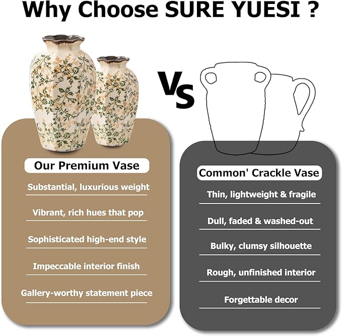 - IDEAL GIFT CHOICE: Measuring 6.7 x 4.75 x 4.75 inches, the SURE YUESI pastoral vase is a thoughtful gift for birthdays, housewarmings, holidays, or special occasions. Its elegant design and multifunctional use make it a cherished addition to any home.