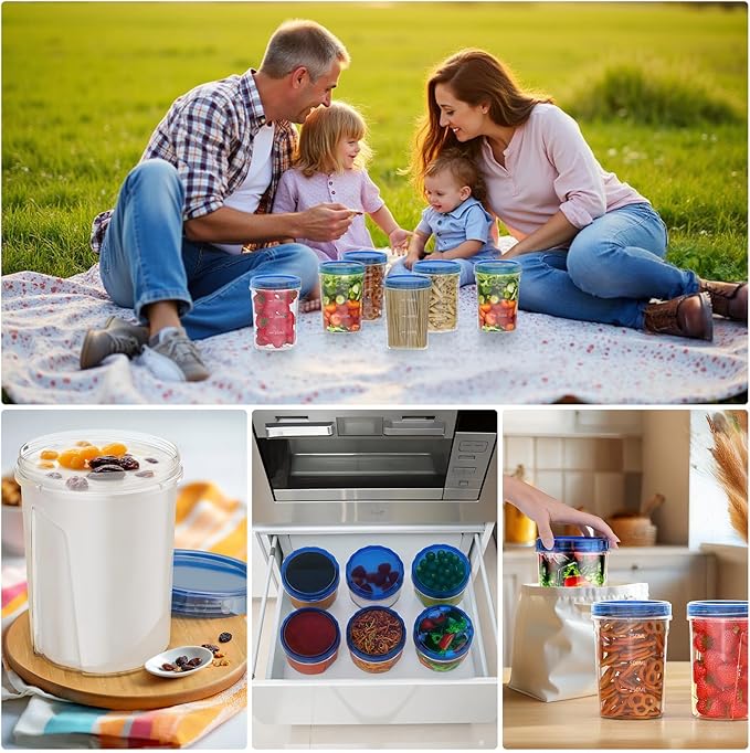 - 【6 Pack - 32 Oz Food Containers Sets】The overnight oats containers includes [6 Pack 32 oz] containers with twist top lids. Perfect for most fruit, vegetable, salad, berry, soups, stews, sauces, flour, pasta, snack, overnight oats, cereal, other food storage. Perfect for most fridges, freezers, cupboards & drawers