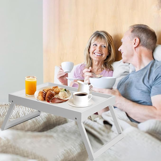 - Versatile & Multi-Purpose Design of Lap Tray: This breakfast tray with folding legs designed for multiple uses. Whether you're enjoying breakfast in bed, Ideal for serving breakfast and dinner,working on your laptop desk, reading, or using it as a serving tray for snacks, this table adapts to your needs or use on a sofa, bed, or even for a picnic