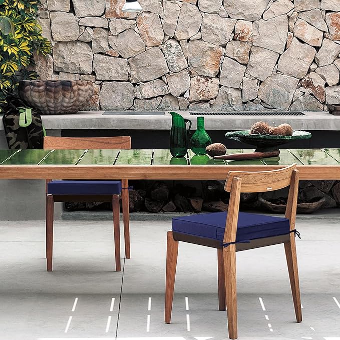 Square Corner Seat Cushions, 18.5" x 16" x 3", Set of 4, Indoor Outdoor Water Repellent Universal Chair Pads with Ties for Patio Furniture, Garden Deck Dining Chairs, Navy
