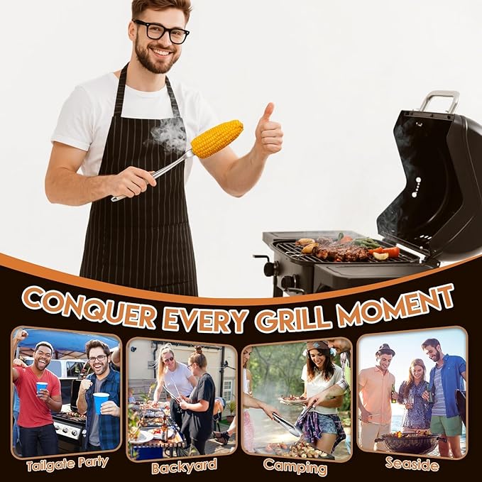 - [Versatile Grilling Accessories] Our BBQ tools are designed to work with all grill types, including gas, charcoal, electric, infrared, and more. Whether you're cooking indoors or outdoors, this reliable grilling set ensures superior performance across all grill surfaces, making it an essential addition to your BBQ arsenal