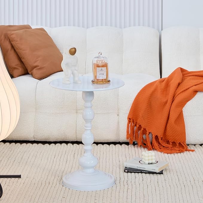 Elegant Vintage Round Side Table with Roman Columns - Sturdy Metal Design, Perfect as a Coffee, End, Tea, or Leisure Table for Living Room and Bedroom Decor, (White 1 Pack)