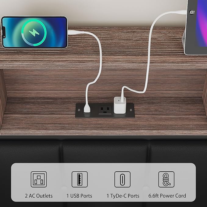 - Stay Powered Up: This bed frames queen is built with a charging station, 2 power outlets and 2 USB ports, keep your tablets, phones, or other electronics powered up