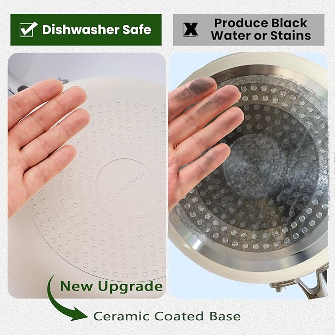 - Oven-Safe Skillet: Our ceramic cookware set can withstand high heat without releasing toxic fumes, unlike traditional nonstick pans. While conventional nonstick cookware typically handles up to 400°F, our skillets can endure temperatures up to 550°F, ensuring safe and versatile cooking options.