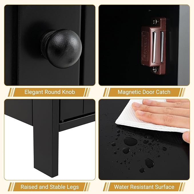- 【Thoughtful Details & Wide Application】The floor storage cabinet features a magnetic catch to help you close the door tightly with low noise. Moreover, thanks to its compact and lightweight design, you can place this floor cabinet anywhere in your home – bedroom, bathroom, living room or entryway to add more storage space.