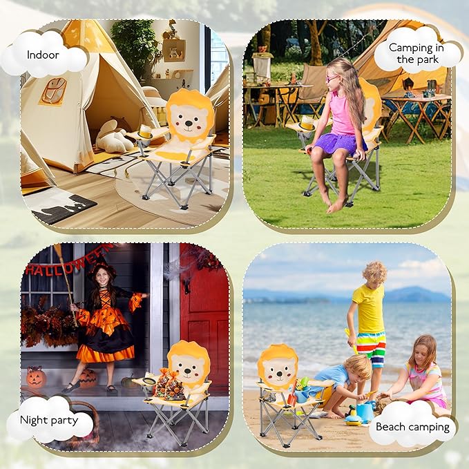 - 【Durable & Safe】 Built with a sturdy metal X-bracket frame and tear-resistant fabric, this chair ensures long-lasting use. The anti-slip base and gravity safety support prevent wobbling and tipping, keeping your child secure while seated.