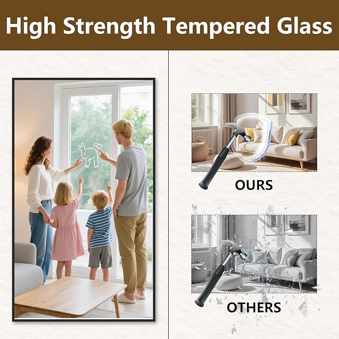 - Wall Mounted Mirror & Floor Mirror: Install effortlessly anywhere—bedroom, entryway, or living room. This mirror offers flexibility in its placement – it can be hung vertically or horizontally on the wall, or simply leaned against it. Hung or leaned, it adds a touch of style to your space