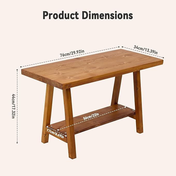 Warmiehomy Solid Wood Bench, 30” Rustic Farmhouse Entryway Bench for Living Room Dining Room Hallway Closet Room, Indoors & Outdoors Bench