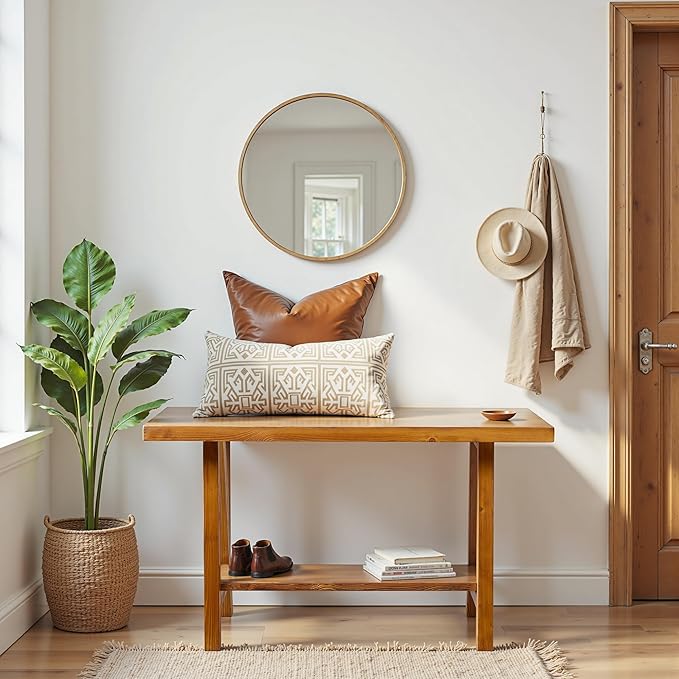 - Rustic Farmhouse Bench: Add rustic charm to your home with this farmhouse-style wooden bench. Pair it with cozy cushions and textured throws for a warm, inviting look. This bench offers both style and comfort, giving your home an instant refresh with its simple yet impactful design.