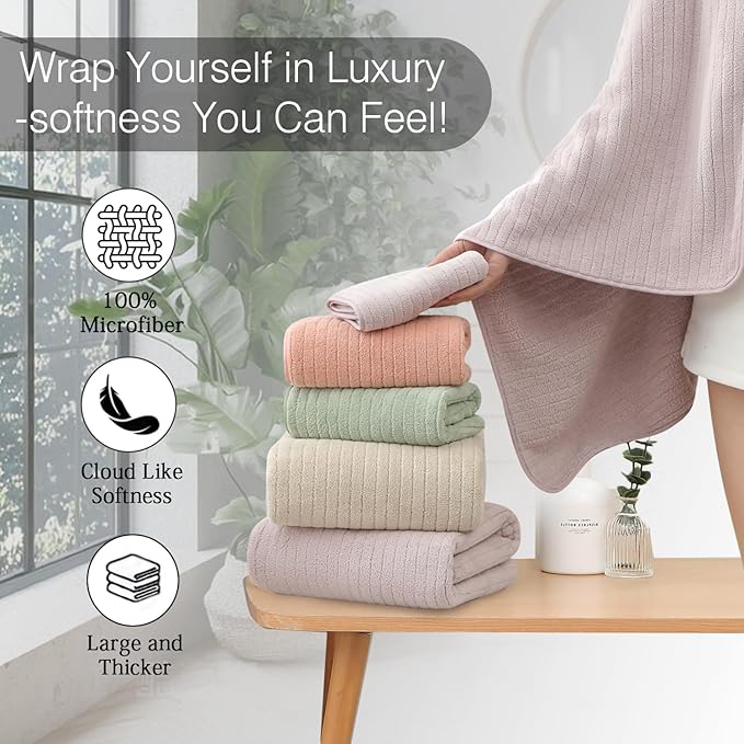- FAMILY MULTIFUNCTIONAL BATH TOWEL:High quality fabric shower towels,skin-friendly,with strong moisture absorption,breathable,children can also use it at ease.Oversize bathroom towels is thick and large,can completely wrap your body.You will enjoy the experience of softness,moisture absorption,luxury,lightness.Perfect for poolside,bathroom,Beach,salon,college dorm room essentials,spa,hotels or gym use.