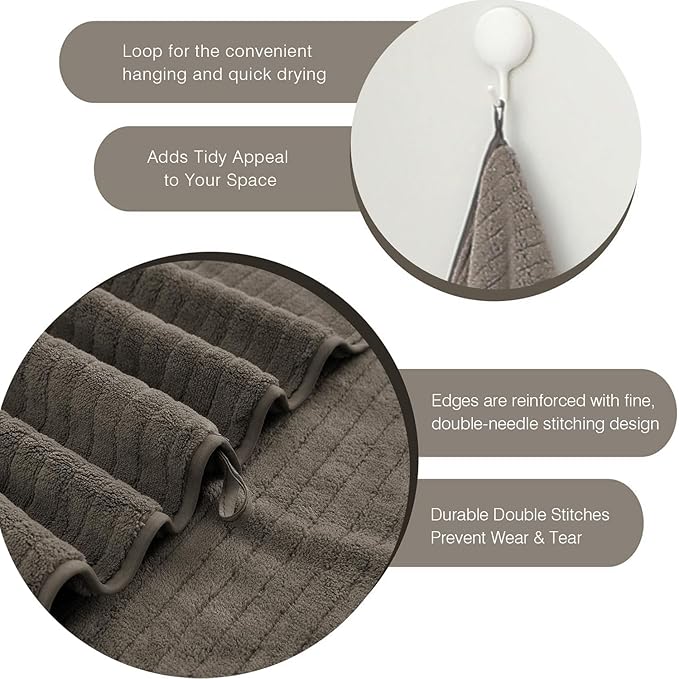 - BETTER WATER ABSORPTION:600 GSM towel set are ultra-absorbent and fast drying,feel soft and cozy.Soft warm hotel plush towels giving you a comfy experience after bathing,and towels can quickly absorb the moisture on your body,drying your hands or cleaning your face.Perfect durable microfiber ensure optimum softness,fluffiness and wonderful absorbency.