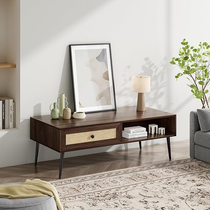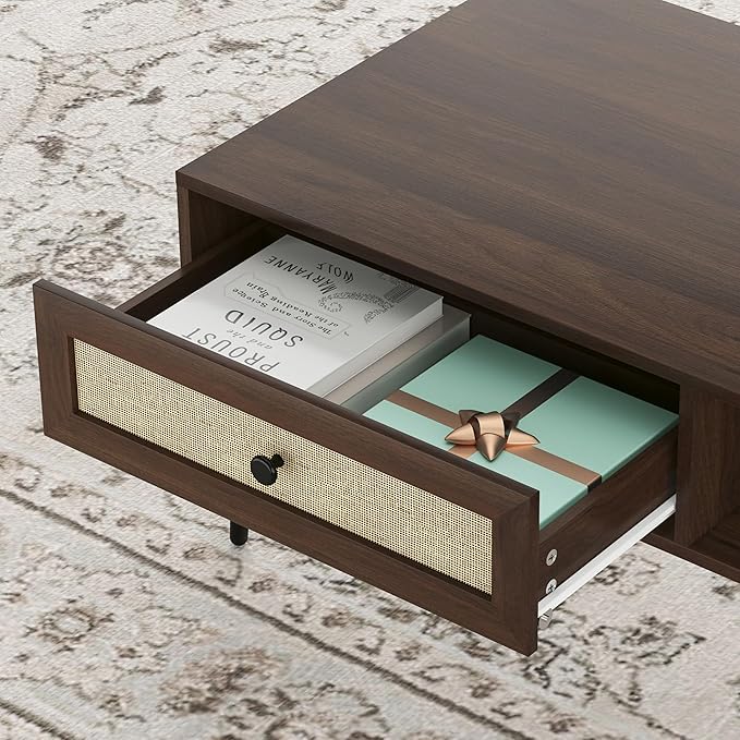 - Ample Storage: With a rattan drawer and an open space, this coffee table can provide convenient storage to keep your space organized. Store small items out of sight or use the open shelves to display your favorite decor pieces.