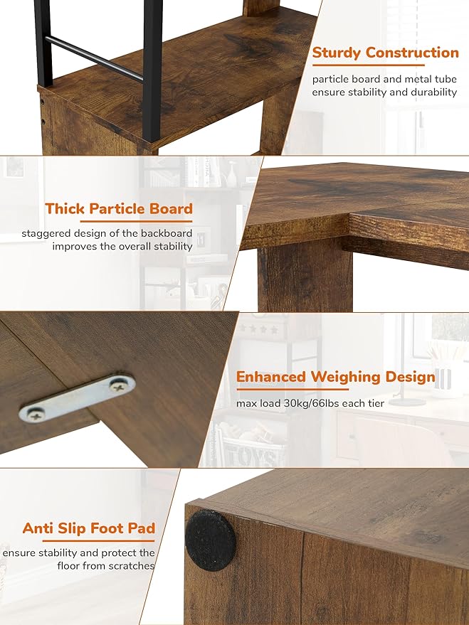 - 【Sturdy & Durable Construction】Built with high-quality iron + wood-grain finish, this corner bookcase supports 77 lbs per shelf. Includes anti-tip hardware for stability, ensuring long-lasting use.