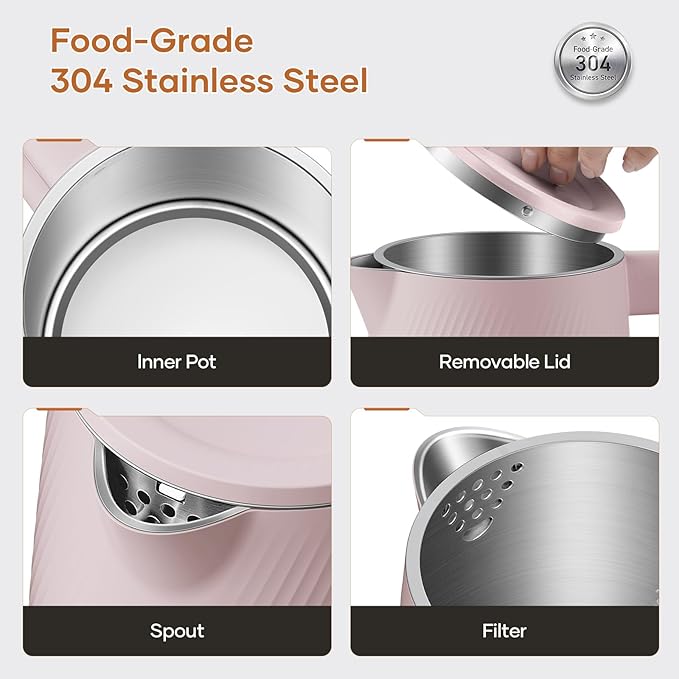 - Safe Double-Layer Design – Safety and health go hand-in-hand with our tea kettle. The cool-touch plastic outer shell keeps your hands safe from burns, while the BPA-free, food-grade 304 stainless steel interior ensures you’re drinking only the purest water. Enjoy every sip with total peace of mind