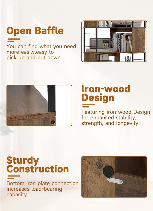 - 【MATERIALS BUILT TO LAS】Made of bending-resistant particleboard, the wood metal bookcase offers 40% higher pressure resistance than ordinary display shelves, preventing warping or cracking over time. Odor-free, scratch-resistant, and easy to clean with a damp cloth