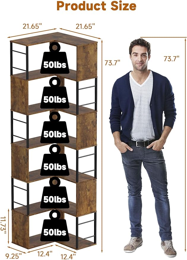 - 【HIGH-EFFICIENCY SPACE UTILIZATION】Designed to fit snugly into corners, this corner shelf can achieves a "zero dead space" layout. With its vertical extension, the bookshelf provides storage equivalent to 3-4 bookcases while occupying small of floor space