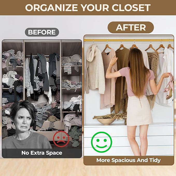 - Easy Installation: The closet rods for hanging clothes tecure the brackets with screws, connect all the poles, insert the metal closet rod into the brackets, and then tighten the rod with screws Multi Purpos