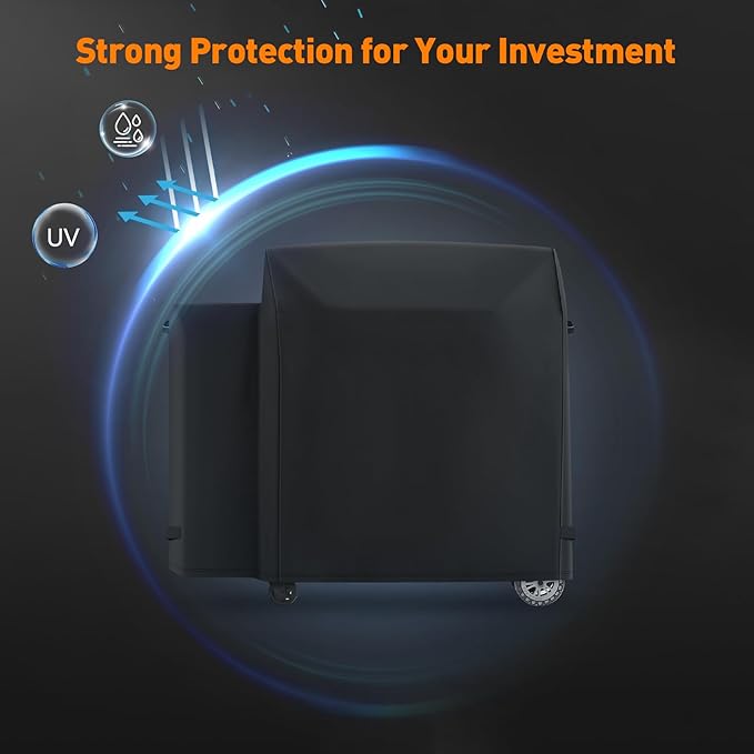 - Waterproof Design: Made of 600D Heavy duty oxford polyester with water resistant PVC coating, the tough fabric provides a powerful guard against any weather: Snow,Hail,rain and wind etc,and gives your grill all year round protection.