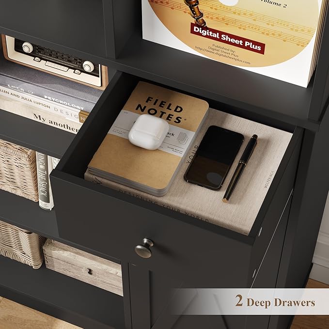- Multiple Scenarios: This bookcase with drawers goes beyond its role as an office cabinet, from a practical shelving unit to display cabinet that artfully showcases CDs, then pivots to a storage cabinet for daily collectibles, matching every need you may have
