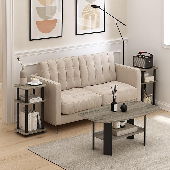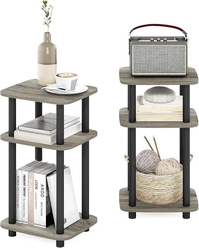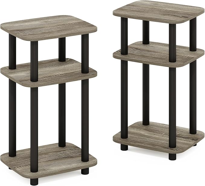 Furinno Just 3-Tier Turn-N-Tube Curve End Table, Side Table, 2-Pack, French Oak/Black
