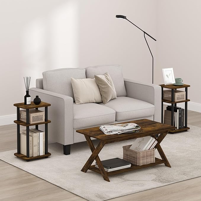 Furinno Just 3-Tier Turn-N-Tube Curve End Table, Side Table, 2-Pack, Amber Pine/Black
