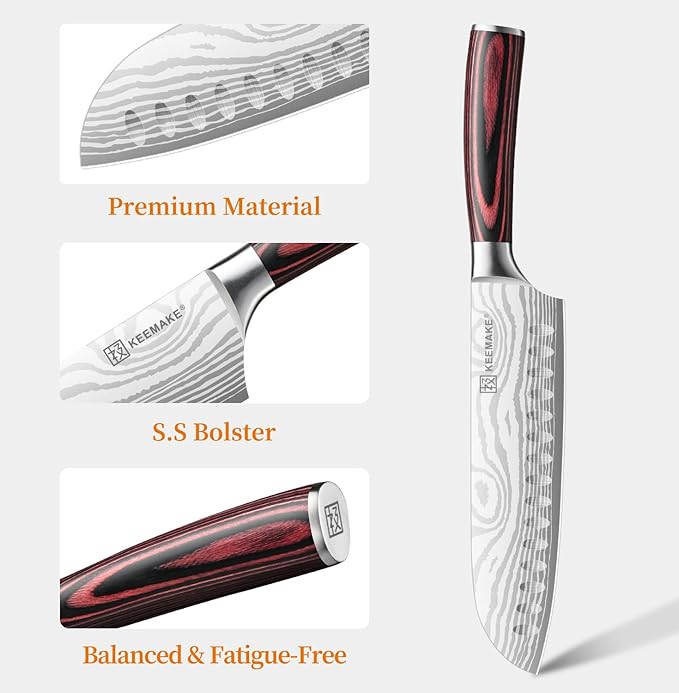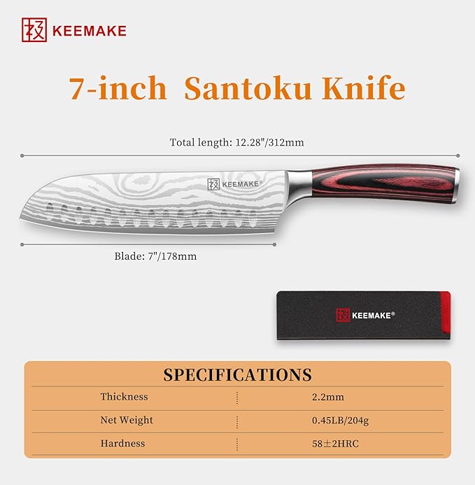 KEEMAKE 7 Inch Japanese Santoku Knife, Ultra-Sharp 1.4116 High Carbon Steel Blade with Pakkawood Handle, Professional Chef's Knife for Kitchen w/Sheath and Gift Box