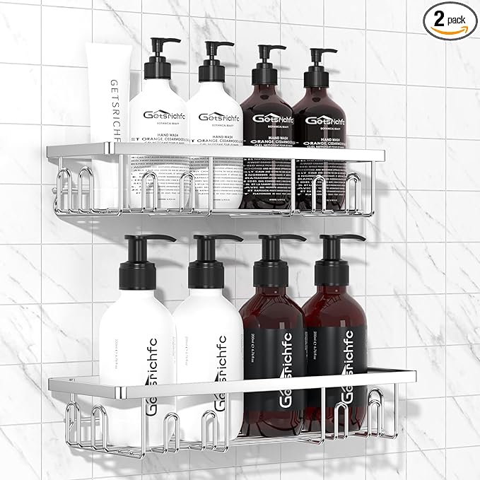 - 【Package Contents & 7/24 After Service】- 2 Excellent shower caddies and individually each shelf comes with integrated 8 hooks, 2 x 3M strong adhesive and 1 x user manual. If you need it, we will help you solve the problem within 24 hours and fully resolve it within 7 days. This is what Getsrichfc should do