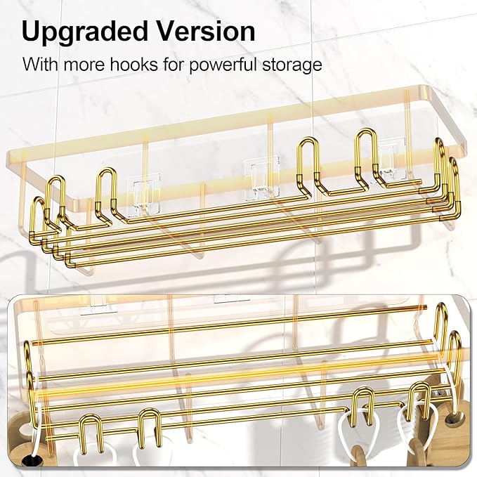 2025 New Adhesive Shower Caddy, Shower Shelves with 16 Hooks, Golden 2 Pack