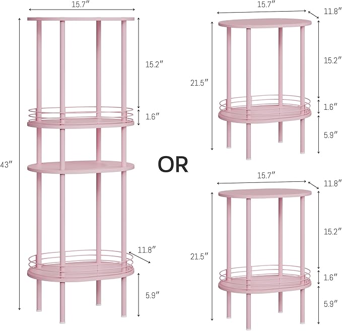 - [FOR SMALL SPACES] Standing at 11.8"D x 15.7"W x 21.5"H, this end table takes up little floor space while serving .This two-tier side tables with top/bottom shelf for extra storage has ample space for books, tablets, remote controls, snacks and drinks