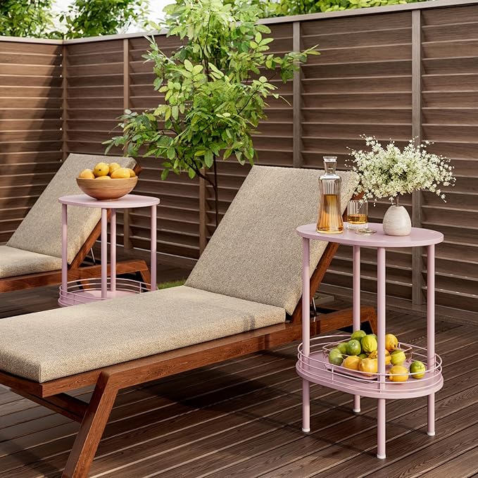 Small Round Side Table Set of 2,Bedside Table with Storage, Morden Round Nightstand, Samll Side Table for Living Room,Bathroom,Bedroom, Nursery, Laundry, Pink