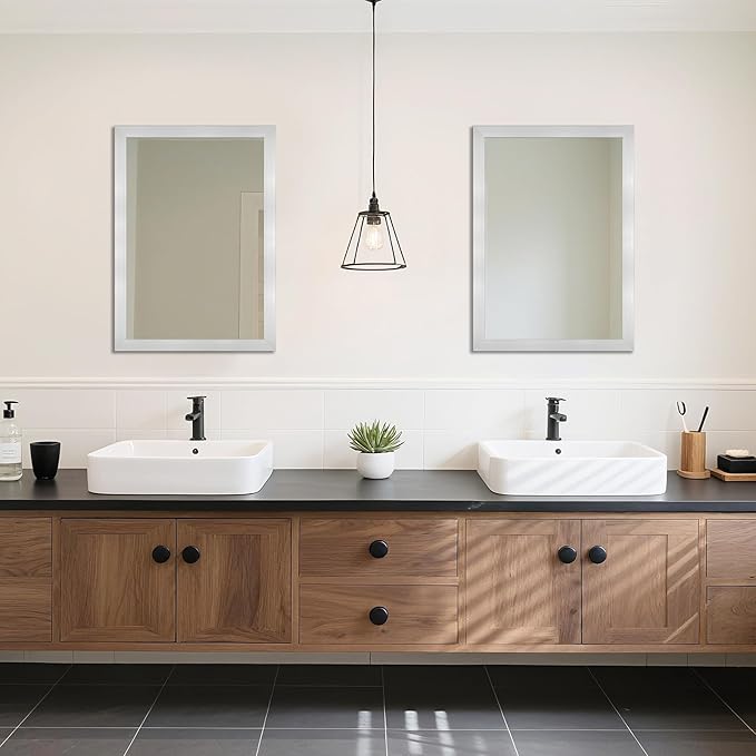 Ruomeng Bathroom Mirror 20" x 28" Rectangular Wall Mirror for Over Sink Feamed Mirror for Entryway, Bedroom, Living Room, Nickel