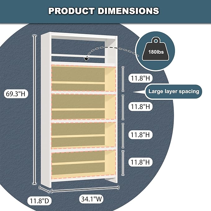 - Size:69"H*34"W*11.8"D.Taller and wider bookshelves.Professional service team for you to solve any problems