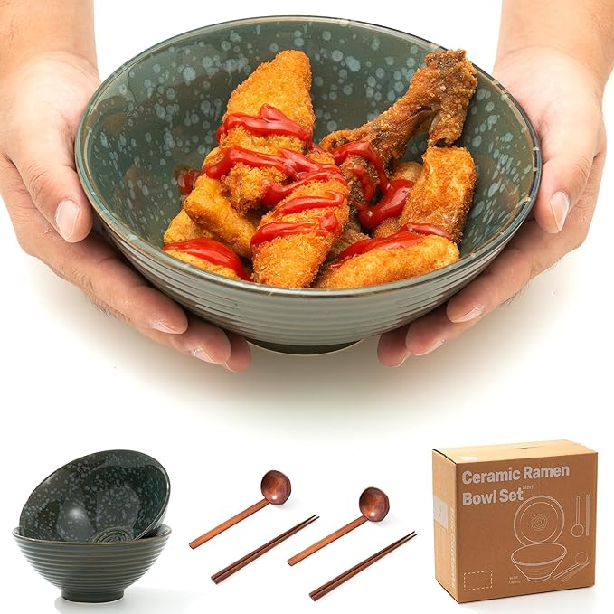 - Complete Dining Set & Ideal Gift: Each set includes 2 ceramic ramen bowls, 2 spoons, and 2 pairs of chopsticks, all made from high-quality materials. This beautifully packaged set makes a thoughtful gift for housewarmings, weddings, birthdays, holidays, or any special occasion. Share the joy of delicious meals with your loved ones.