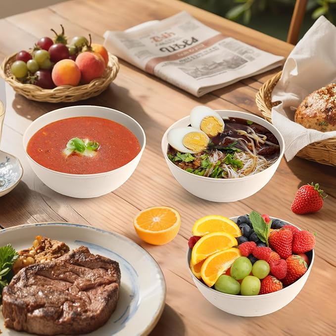 - PREMIUM WHEAT STRAW MATERIAL: Crafted from premium, food-grade wheat straw fiber, these wheat straw bowls reusable are unbreakable bowls (shatter-resistant) and completely non-toxic. Enjoy safe, worry-free meals for the whole family with no harmful chemicals or odors – perfect bowls for kitchen and beyond