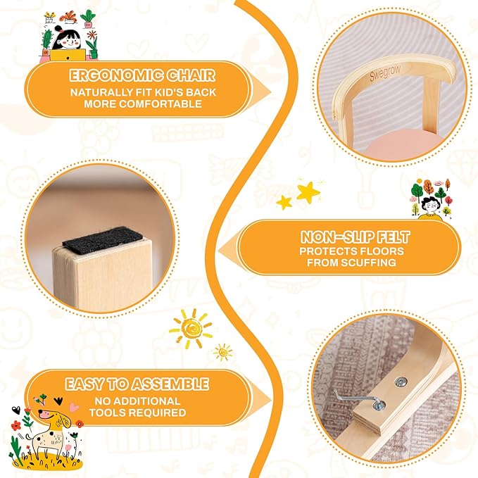 - 100% Quality Solid Wood - The Swegrow toddler chair is made of high quality birch and poplar wood, wood is natural and environmentally friendly. The children's chair is TSCA and CPSIA certified to meet strict safety standards, does not release harmful chemicals, creating a safe and healthy space for kids to grow.