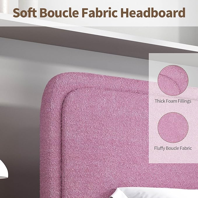 - Fluffy Boucle Fabric: The pink-colored twin bed frame is upholstered in a cloud-like terry fabric that is soft to the touch while providing a fluffy texture. Boucle fabric all-over fabric cover for bold style, filling your home with warmth and calm so you can sleep in style