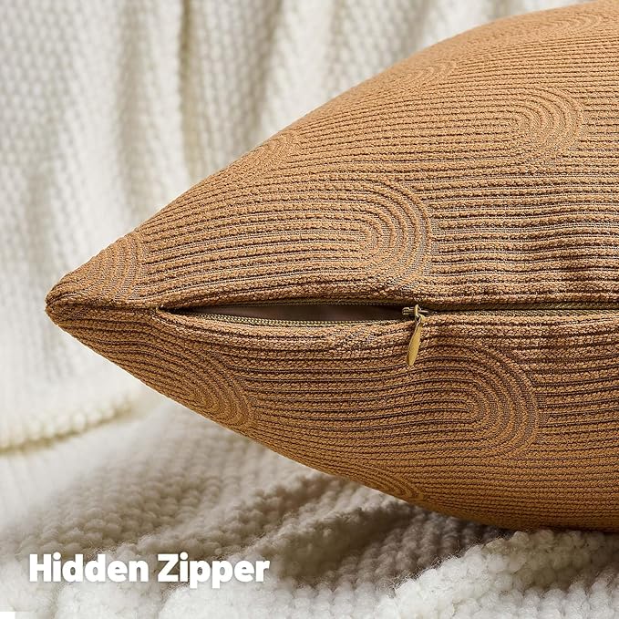 FUTEI Bronze Chenille Decorative Throw Pillow Covers 26x26 Inch Set of 2,Soft Cozy Striped Geometric Patterns Euro Pillow Sham,Modern Home Decor for Couch Bed Living Room