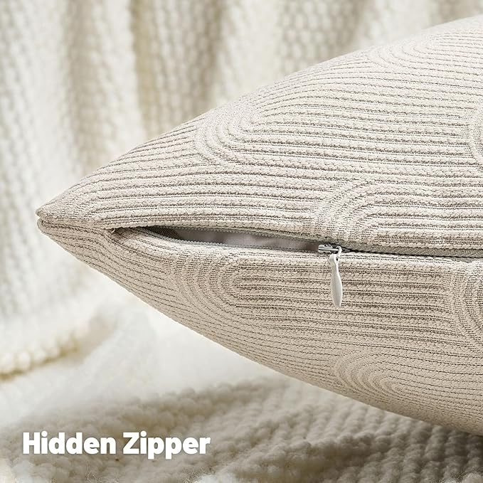 FUTEI Beige Chenille Decorative Throw Pillow Covers 24x24 Inch Set of 2,Soft Cozy Striped Geometric Patterns European Cushion Case,Modern Home Decor for Couch Bed Living Room