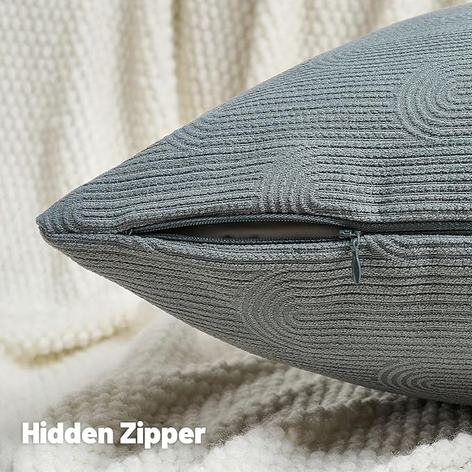FUTEI Dark Grey Chenille Decorative Throw Pillow Covers 20x20 Inch Set of 2,Soft Cozy Striped Geometric Patterns Cushion Case,Modern Home Decor for Couch Bed Living Room