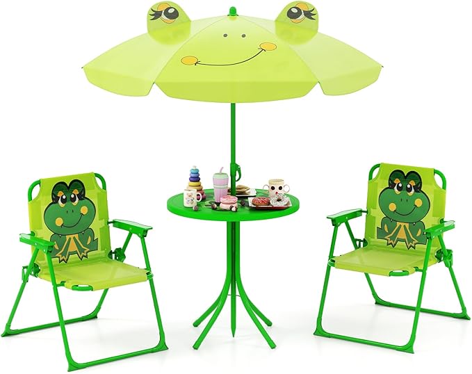 - Compact & Portable Design: Designed for convenience, the umbrella and 2 chairs can be easily folded. Besides, the entire kids outdoor furniture only weighs 9 lbs. Thus, it's space-efficient for storage and easy for carriage, ideal for outdoor activities such as beach trips, picnics, or playdates in the park.