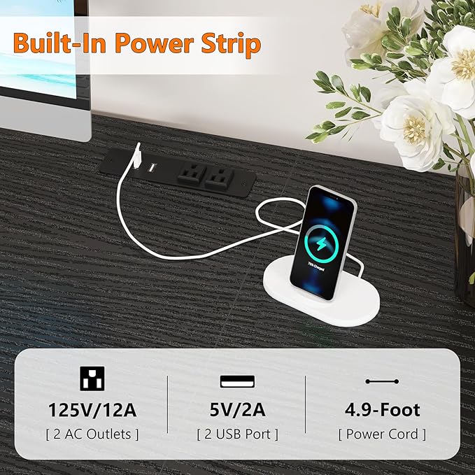 - [INTEGRATED POWER STRIP]: The computer desk with 8 drawers is equipped with integrated power strip, including 2 USB port and 2 built-in AC outlets, which provides power support for your computer, tablet and phone and keeps your gaming equipment always powered up