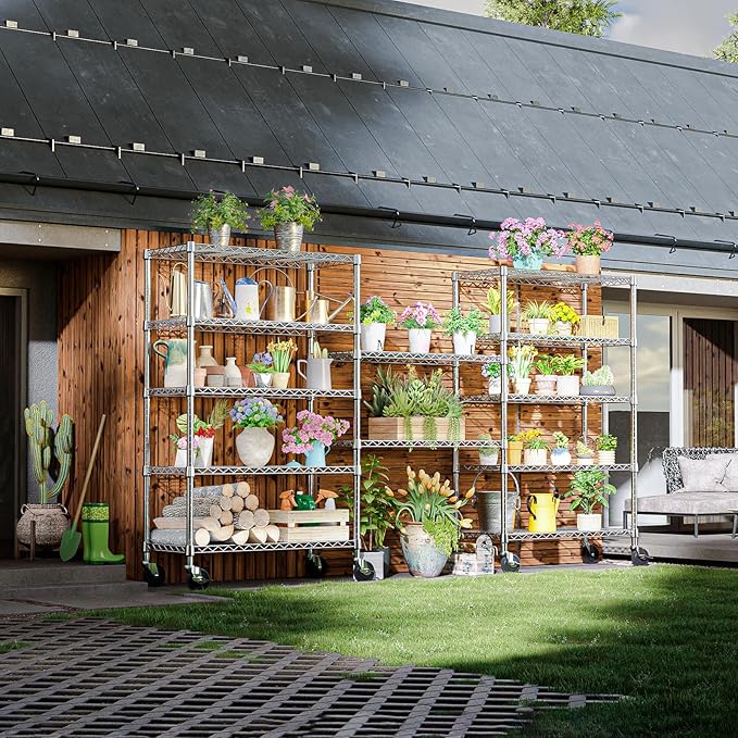 - 【Multi-Functional Storage – Moves with You】Perfect for garage, pantry, kitchen, laundry room, office, or even outdoor covered areas, this rolling shelving unit adapts to wherever you need it. Its mobility makes it a great choice for dynamic spaces—easily rearrange your storage layout as your needs change.