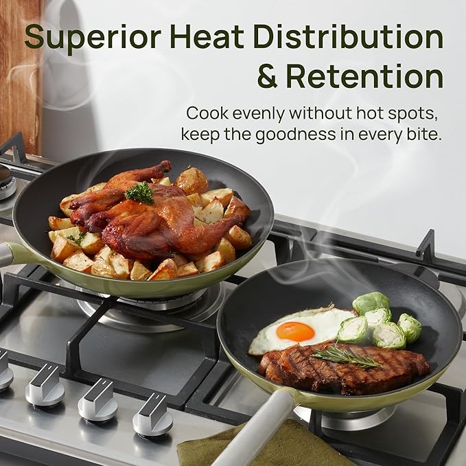 - MORDERN SURFACE: The mordern frying pan with elegant sage green gradient bottom adds a stylish touch to your kitchen while delivering professional-grade cooking performance for any recipe.