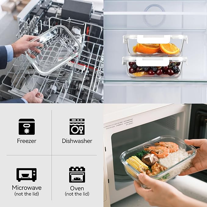 - AIRTIGHT SEALED LIDS: Equipped with BPA-free plastic lids featuring silicone seals, these glass storage containers with lids keep your food fresh longer while preventing leaks and spills. Ideal for bringing meals to work, the gym, or on picnics.