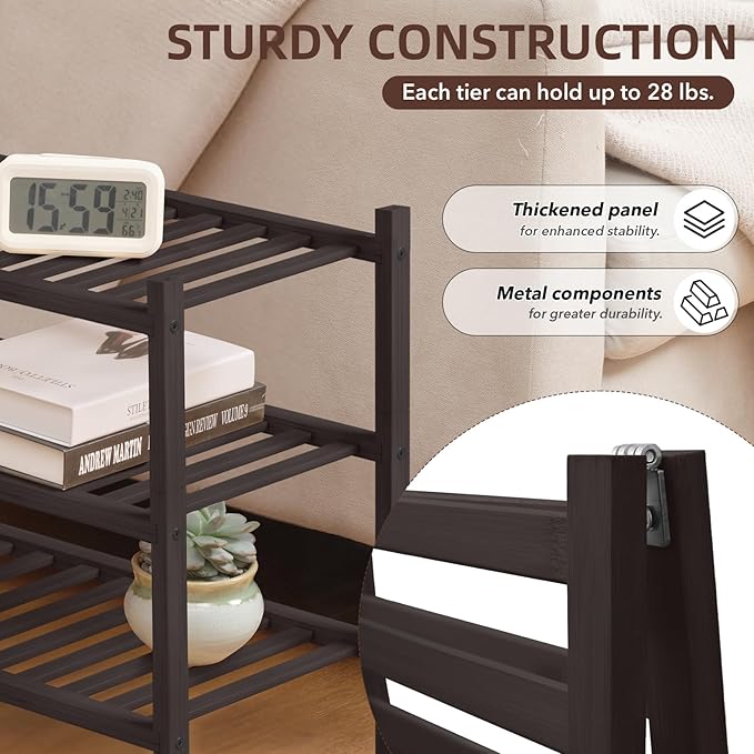 3 Tier Bamboo Shoe Rack Storage Organizer for Closet, Multifunctional Stackable Free Standing Shoe Shelf Organizer for Small Space,Entryway, Hallway, Bathroom27 x11 x20(Brown, 3 Tier)